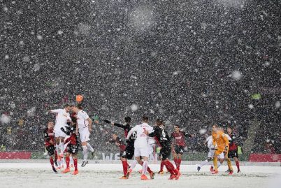 Ми на полі! Навіть у сніжну погоду діти школи “Кудрівка Юніор” можуть тренуватись разом зі своїми друзями.